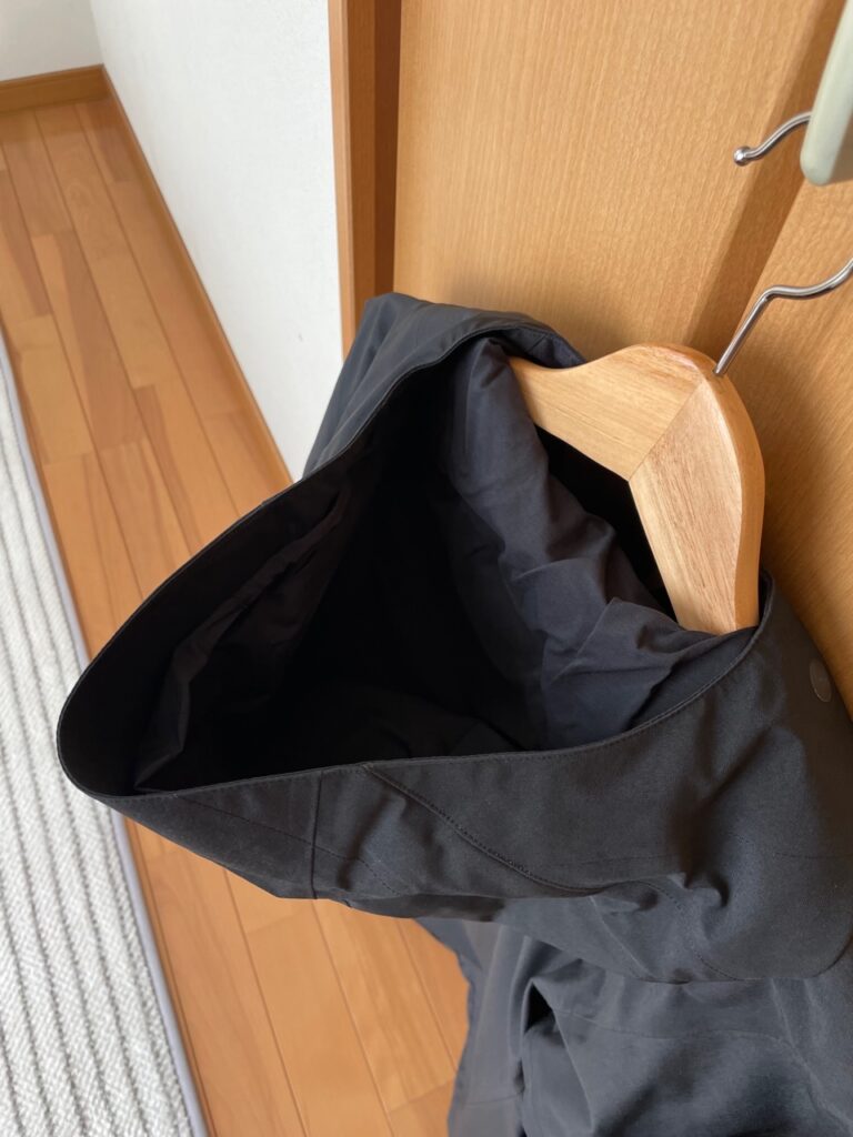裾のドローコードを絞ることで、シルエットをコンパクトに調整できます。